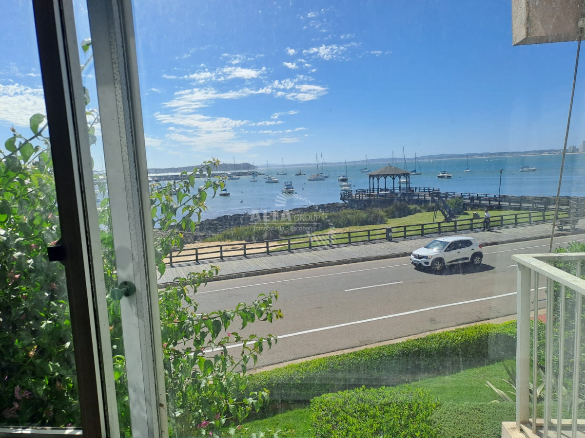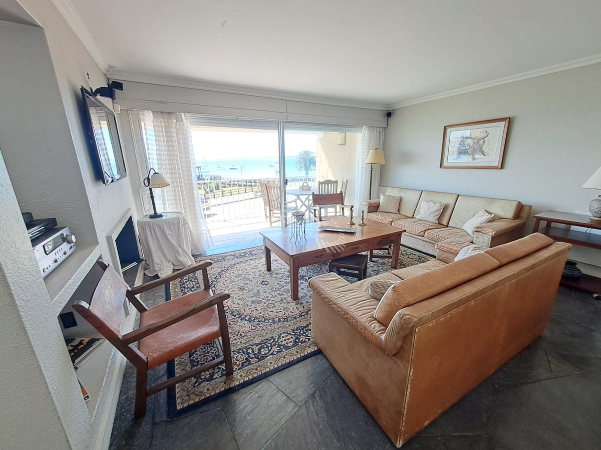 Doble Living con estufa, television, aire acondicionado, bar y doble balcón grande con espacio para sillas y mesa, piso en piedra y todos con vista Puerto de Punta del Este.