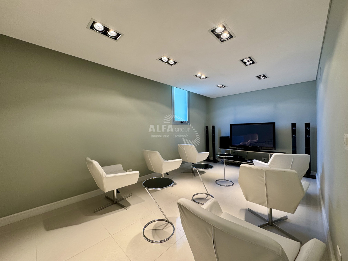 Muy buen departamento en edificio moderno. Cuenta con tres dormitorios, principal en suite, baño completo y baño social. Living comedor, con cocina semi integrada y gran terraza balcón con parrillero propio. El edificio cuenta con servicio de playa, servicio de mucama, piscina interior y exterior, gimnasio, sauna, cine, barbacoa de uso comun, playroom y cine.