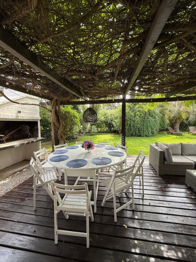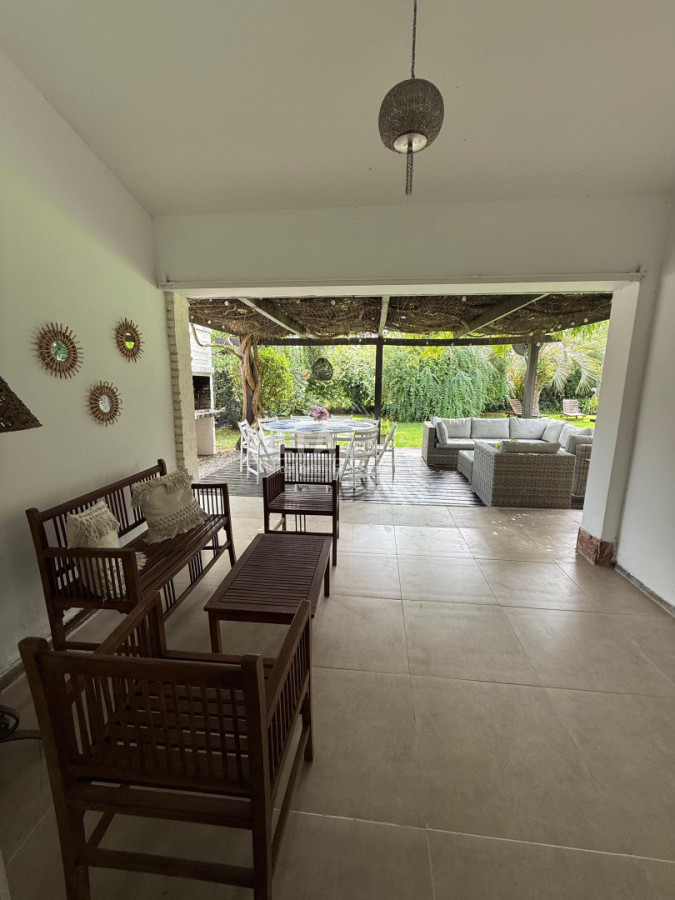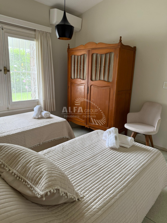 Hermosa casa ideal para disfrutar en vacaciones, 3 dormitorios, 2 baños, dependencia de servicio con baño, cocina totalmente equipada, living, comedor, parrillero, garage, terraza.